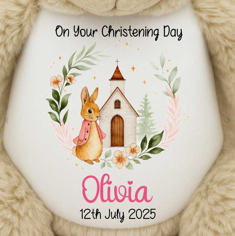 Mark their special day with a personalised bear. Add their name, christening date, or a blessing they'll keep forever.
